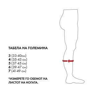 ТАБЕЛА НА ГОЛЕМИНА 3 (33-40см) 4 (35-43 см) 5 (37-45 см) 6 (39-47 см) 7 (41-49 см) *За точна големина потребно е да го измерите обемот на листот на ногата.