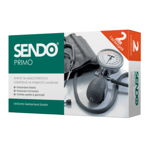 Апаратот за притисок SENDO Primo е механички уред за мерење на крвен притисок дома. Со прицврстена пумпа и прицврстен стетоскоп, го прави мерењето на крвниот притисок дома поудобно и му дава можност за мерење со една рака.
