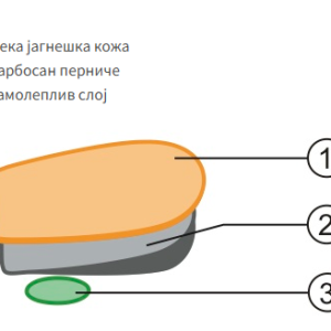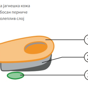 За шилци во пета....Кожни влошки за удобен чекор преку целиот ден. Оваа влошка, посебно помага во случај на пократка нога и проблеми со уморни стапала, бидејќи го намалува болното чувство при одењето, а при тоа, го изедначува товарот на глуждот и коленото. Делот покриен со мека јагнешка кожа (1) заедно со делот од карбосан пената (2), кој е поставен на петата имаат улога да ја отстранат болката при целосно газење на стапалото. Тоа вклучува самолеплив слој против лизгање (3) кој ја одржува целата стабилност.