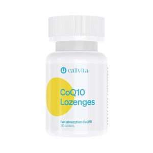 Сублингвални таблети со коензим Q10 за брза апсорпција CoQ10 Lozenges е таблета која се става под јазик и содржи коензим Q10, со природен вкус на лимон, со побрзо ослободување и полесна апсорпција. Производот CoQ10 Lozenges содржи коензим Q10 во форма на таблети наменети за сублингвална употреба со брза ресорпција. Коензимот Q10 е значаен за продукцијата на енергија на клетките. Коензимот Q10 е липосолубилен антиоксидант кој природно го има во клетките. Тој помага во заштитата од слободните радикали кои се највеќе одговорни за клеточното стареење. Воедно, докажано придонесува во одржувањето на нормалниот крвен притисок. Исто така, коензимот Q10 може да помогне во одржувањето на здравата мозочна функција. Дозирање: 1 таблета се става под јазик на ден или по препорака на лекар Дозирања во пакување: 30 ВНИМАНИЕ! Производот е чувствителен на топлина и светлина. Квалитетот на коензимот Q10 се намалува на темепратура на 35 степени целзиусови. Бремените жени и доилките треба да се консултираат со лекар пред употреба на коензим Q10! СОСТАВ: 30 мг Коензим Q10 Производител: Calivita International