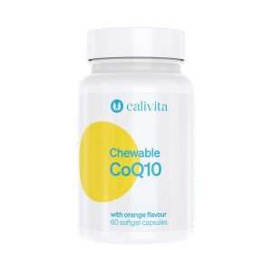 Гел капсули за жвакање со коензим Q10 Додаток во исхраната со 60мг CoQ10, во форма на гел капсула за жвакање Производот Chewable Q10 содржи коензим Q10 во форма на меки гел капсули за жвакање. Коензимот Q10 е значаен за продукцијата на енергија на клетките. Коензимот Q10 е липосолубилен антиоксидант кој природно го има во клетките. Тој помага во заштитата од слободните радикали кои се највеќе одговорни за клеточното стареење. Воедно, докажано придонесува во одржувањето на нормалниот крвен притисок. Исто така, коензимот Q10 може да помогне во одржувањето на здравата мозочна функција. Производител: Calivita International