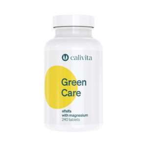 Додаток во исхраната Основната состојка на производот Green Care е луцерката која има големата количина на хлорофил. Таа содржи повеќе витамини (C, D, E, K, B), бета каротен, минерали (калциум, железо, калиум, фосфор) и есенцијални амино-киселини. Дозирање: 4-8 таблети наден или по препорака на лекар Дозирања во пакување: 60 СОСТАВ 500 мг Лист од луцерка, 25 мг Магнезиум ВНИМАНИЕ! По подолга употреба од 3 месеци, направете пауза во период од 1 месец! Лица кои земаат антикоагуланти, треба да се консултираат со лекар пред употреба на производи кои содржат витамин К! Производител: Calivita International
