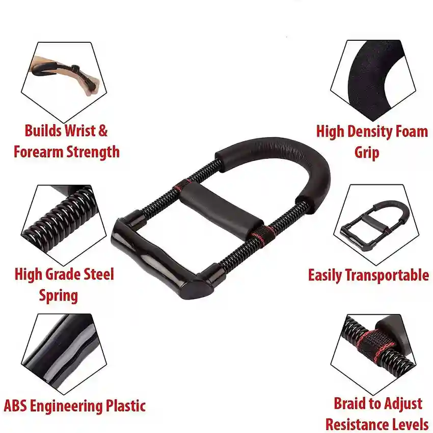 Справа за подлактица изработена од челичен федер, висококвалитетен ABS материјал и EVA пена. Ги зајакнува мускулите на подлактицата и зглобот. Дизајниран е за да ја подобри силата, моќта и брзината на вашите зглобови, прсти и подлактици.