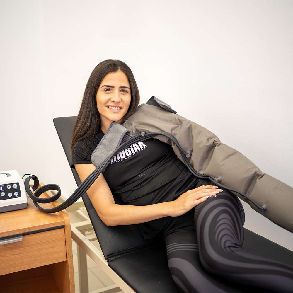 Системот за терапија со компресија обезбедува висококвалитетна лимфна деконгестија. Исто така помага за подобра циркулација на крвта и лимфата, спречува длабока венска тромбоза и обезбедува олеснување на отокот.