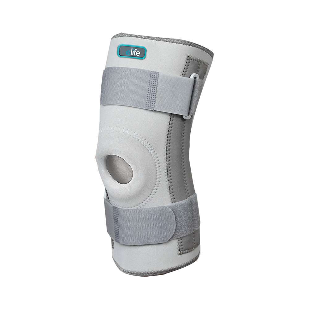 Коленска ортоза за фиксација на патела со метални фишбани изработена од висококвалитетна неопренска ткаенина. Напредни спирални потпирачи од двете страни кои обезбедуваат неспоредлива поддршка и стабилност за сите движења на коленото, за да може да останете активни и без болка во текот на целиот ден. Силни ремени со прилагодливи затворачи кои обезбедуваат прилагодено прилепување и спречуваат лизгање. Отворена кружна форма која го намалува притисокот врз капачето на коленото, намалувајќи ја болката и непријатноста дури и за време на најинтензивните активности.