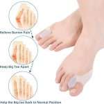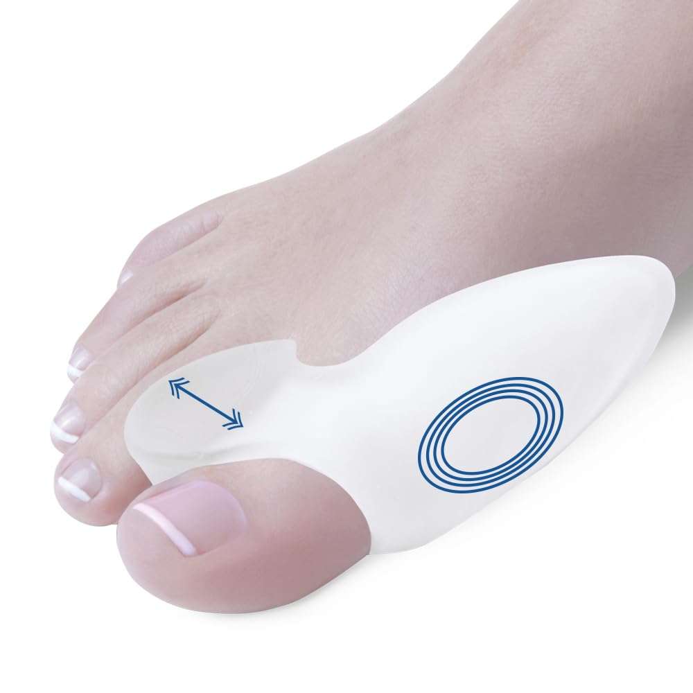 Корективен апарат за Халукс - Валгус на стапало изработен од висококвалитетен, мек и флексибилен силиконски материјал кој се чувствува удобно на кожата. Нежно го пренасочува палецот на ногата во неговата природна положба, обезбедувајќи значително олеснување на болката, притисокот и воспалението. Редовната употреба може да помогне во забавување на прогресијата на Hallux Valgus. Неговиот дишечки дизајн овозможува да се носи во текот на целиот ден, па дури и во текот на ноќта без иритација. Погоден е за сите големини и може да се користи и на машки и на женски стапала.