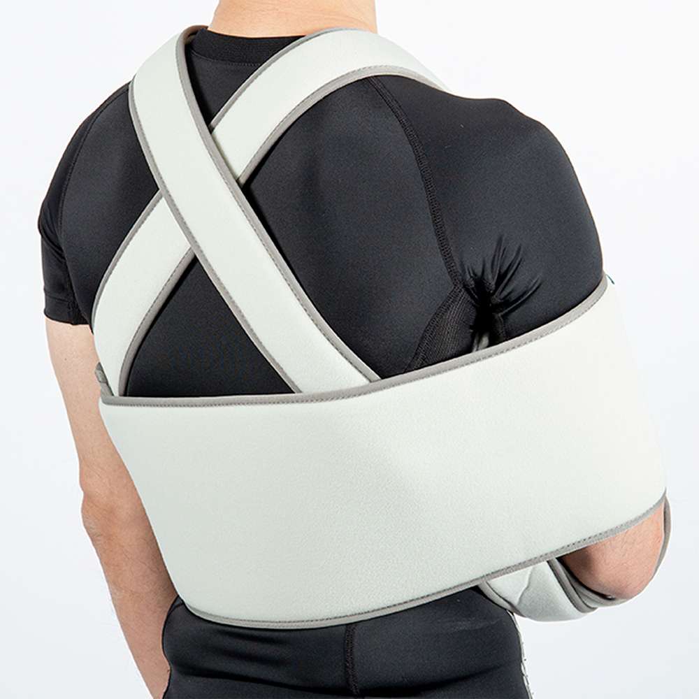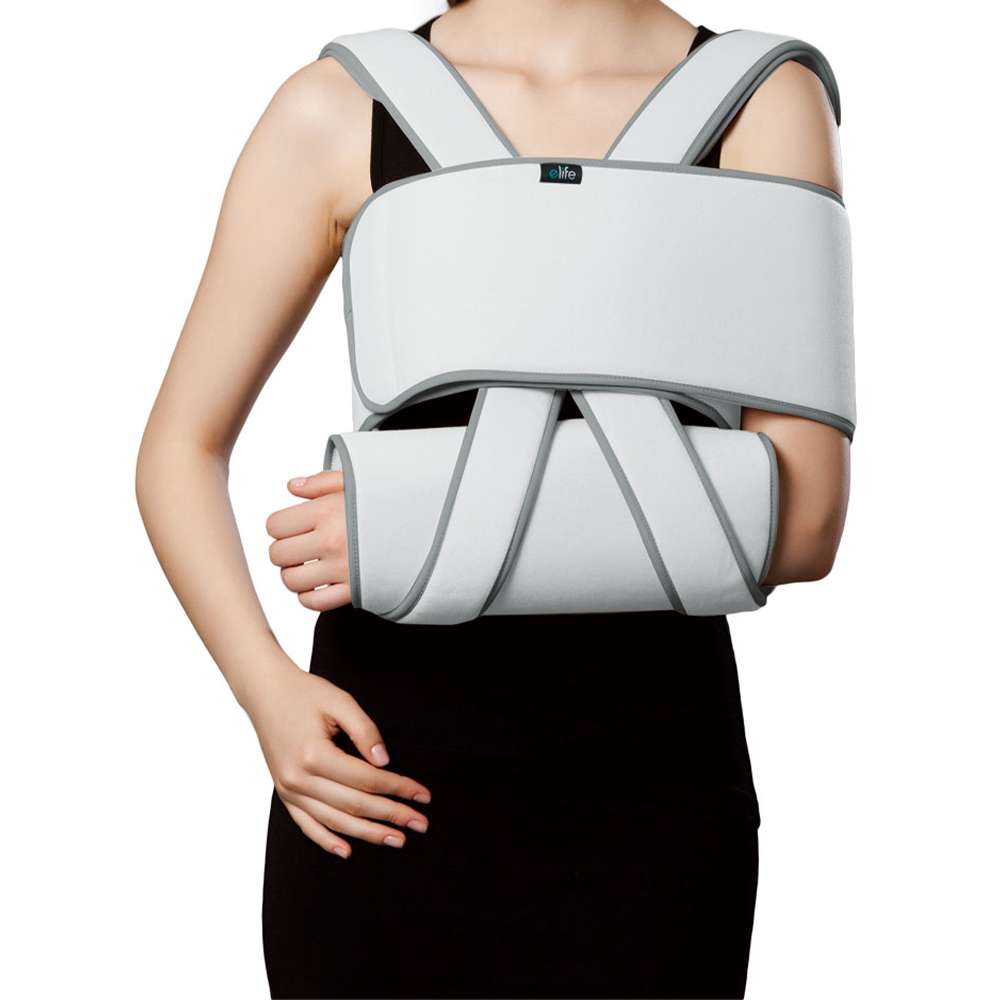 Постоперативна и посттрауматска имобилизација на рамо. Ременот што оди преку рамото ја позиционира раката под агол од приближно 90°, а ременот на грбот ја стабилизира таа позиција.Големината на производот се одредува спрема скалата на мерки на самата кутија.
