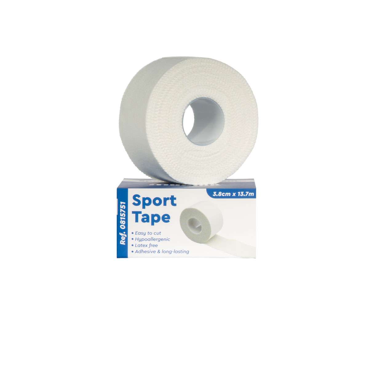 Спортска лента 3,8см еластична и леплива лента која се користи за лекување на мускулно-скелетни повреди, намалување на болката и отокот, поддршка на мускулите и зглобовите и подобрување на циркулацијата. Се нанесува на кожата преку мускулите, зглобовите и лигаментите, создавајќи простор за подобро движење и функција на мускулното ткиво.