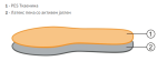 Анатомски обликувана влошка за рекреација и спорт. Комбинацијата од 100% памучен фротир и латексна пена со одлични ароматични својства кои се фиксирани на лежиште, коe заедно со апсорбирачкиот дел од карбосан го поддржува крстот на рбетот и попречно и по должина, го елиминира лошиот мирис и дава чувство на удобност без разлика дали трчате или пешачите.