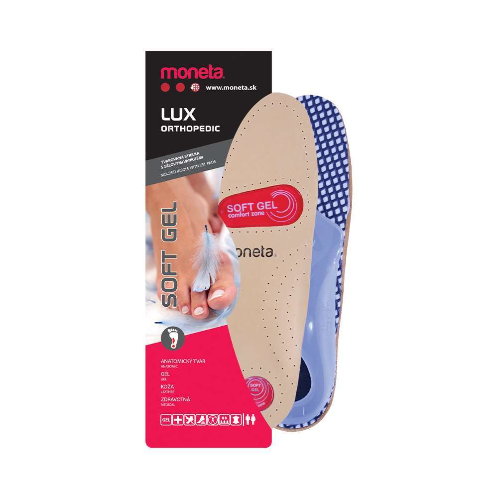 Луксузни кожни влошки со гел перничиња за комфорен чекор. Луксузна анатомска влошка, које е комбинација од мека јагнешка кожа и латекс пена која содржи во себе активен јаглен. Влошката е поставена на пластичен калап кој обезбедува здрава поддршка на лонгитудиналниот мост. Во неа има вградени меки силиконски перничиња на посебни зони на притисок (напред и на петата) која заедно со карбонското антишок перниче, ги компензира ударите при чекорење и го намалува притисокот и болките во нозете.