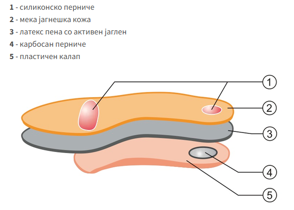 Анатомска влошка изработена од овча кожа од латекс пена и активен јаглен.
