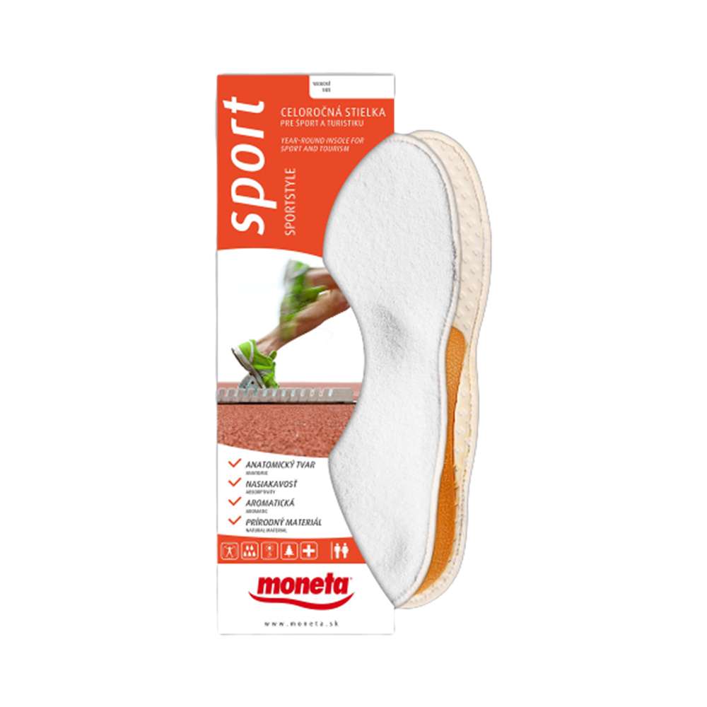 Анатомски обликувана влошка за рекреација и спорт. Комбинацијата од 100% памучен фротир и латексна пена со одлични ароматични својства кои се фиксирани на лежиште, коe заедно со апсорбирачкиот дел од карбосан го поддржува крстот на рбетот и попречно и по должина, го елиминира лошиот мирис и дава чувство на удобност без разлика дали трчате или пешачите.