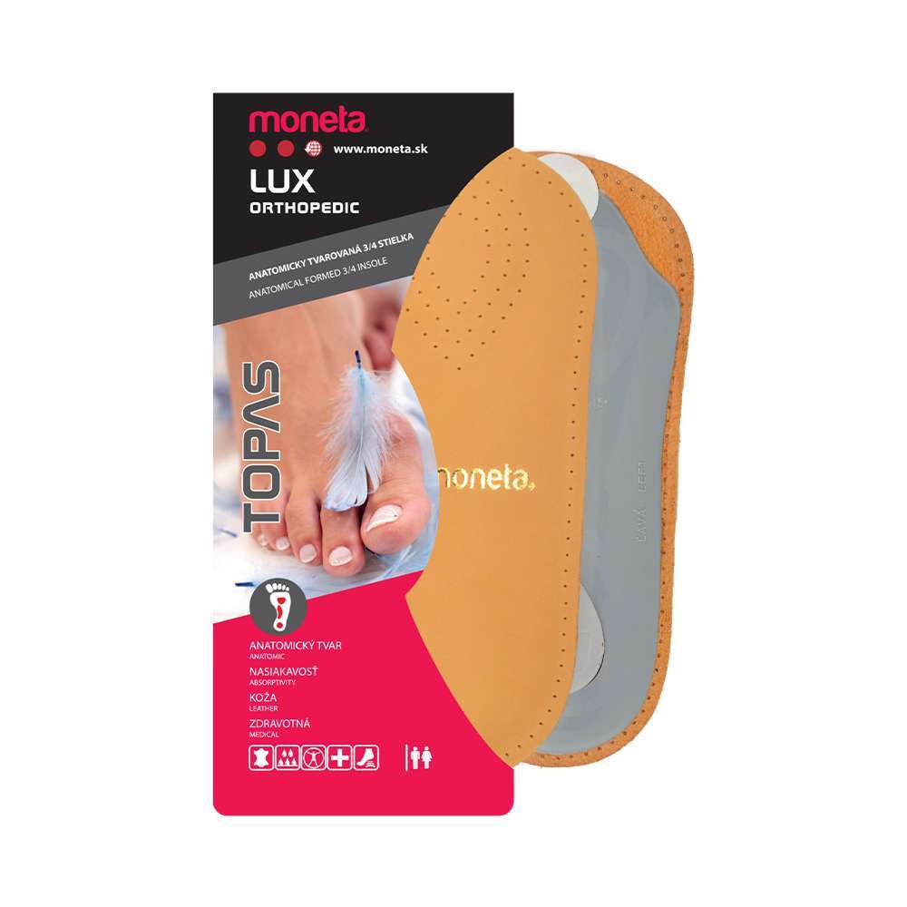3/4 влошка изработена од перфорирана јагнешка кожа, која превенира деформација на стапалото. Анатомска ? влошка, погодна за секој тип на обувки. Луксузна кратка влошка произведена на горниот дел со перфорирана мека јагнешка кожа која дише и анатомска подршка за трансверзалниот и лонгитудиналниот лак на ногата. Нејзините карбосан антишок перничиња ги апсорбираат механичките удари при одењето, а со тоа се намалува потенцијалната болка на долниот и горниот дел од грбот. На тој начин влошката ги намалува заморот и деформацијата на нозете, а при чекорење овозможува максимална удобност.