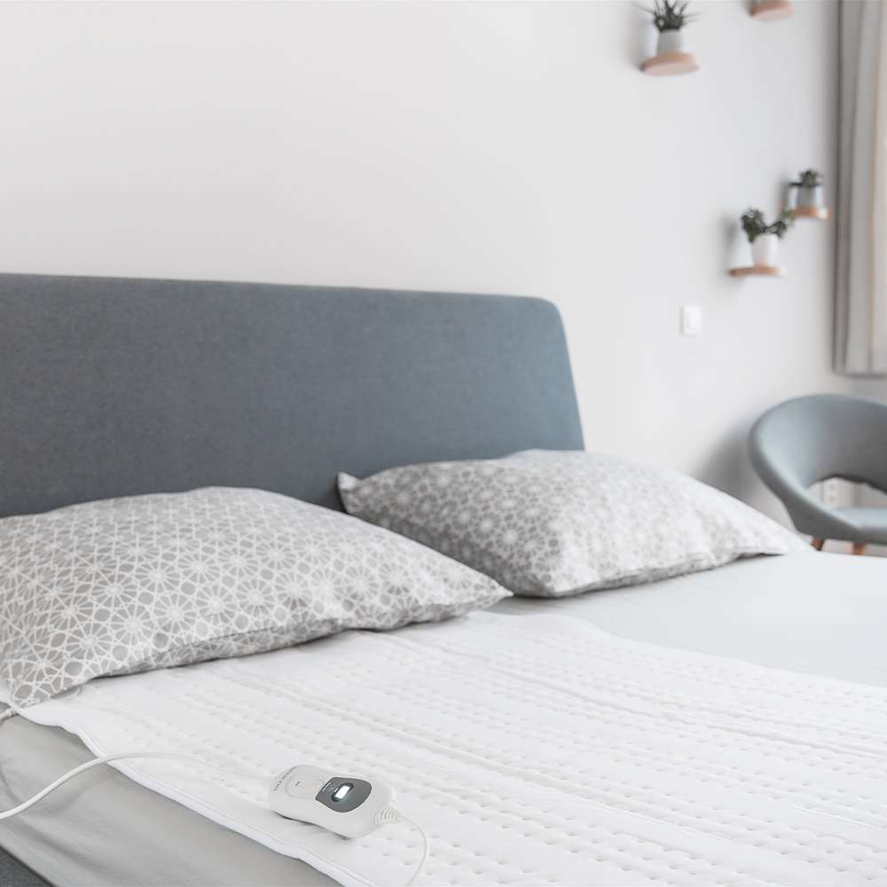 Електрична прекривка за кревет со моќност од 60W изработена од мек 100% полиестерски материјал, кој се чувствува многу удобно и нуди брза спроведливост на топлина. Идеална за опуштање на мускулите, ублажување на грчеви и контрактури, поттикнување на циркулацијата на крвта и загревање во студени денови. Погодна е за сите возрасти, има заштита од прегревање и лесно може да се пере штом се отстрани регулаторот.