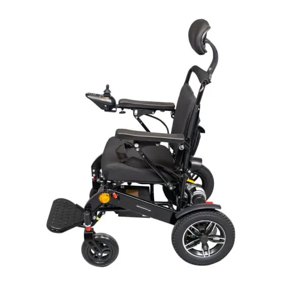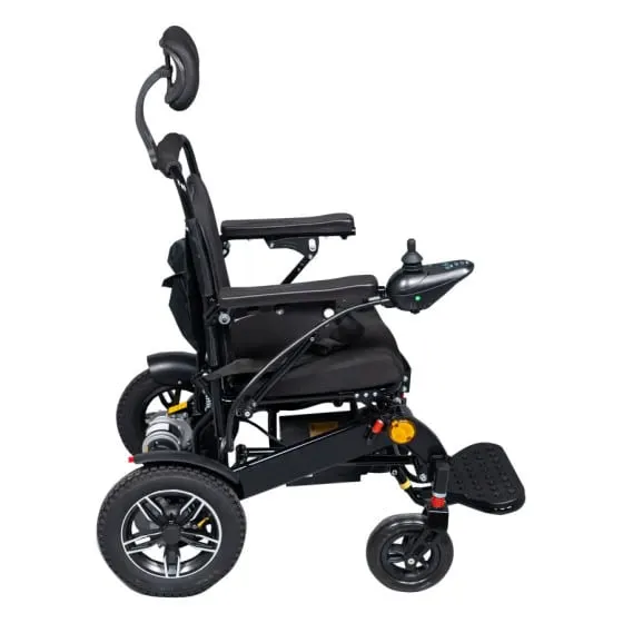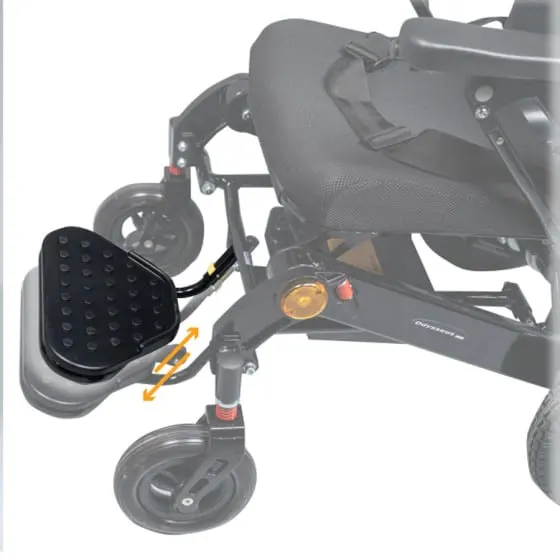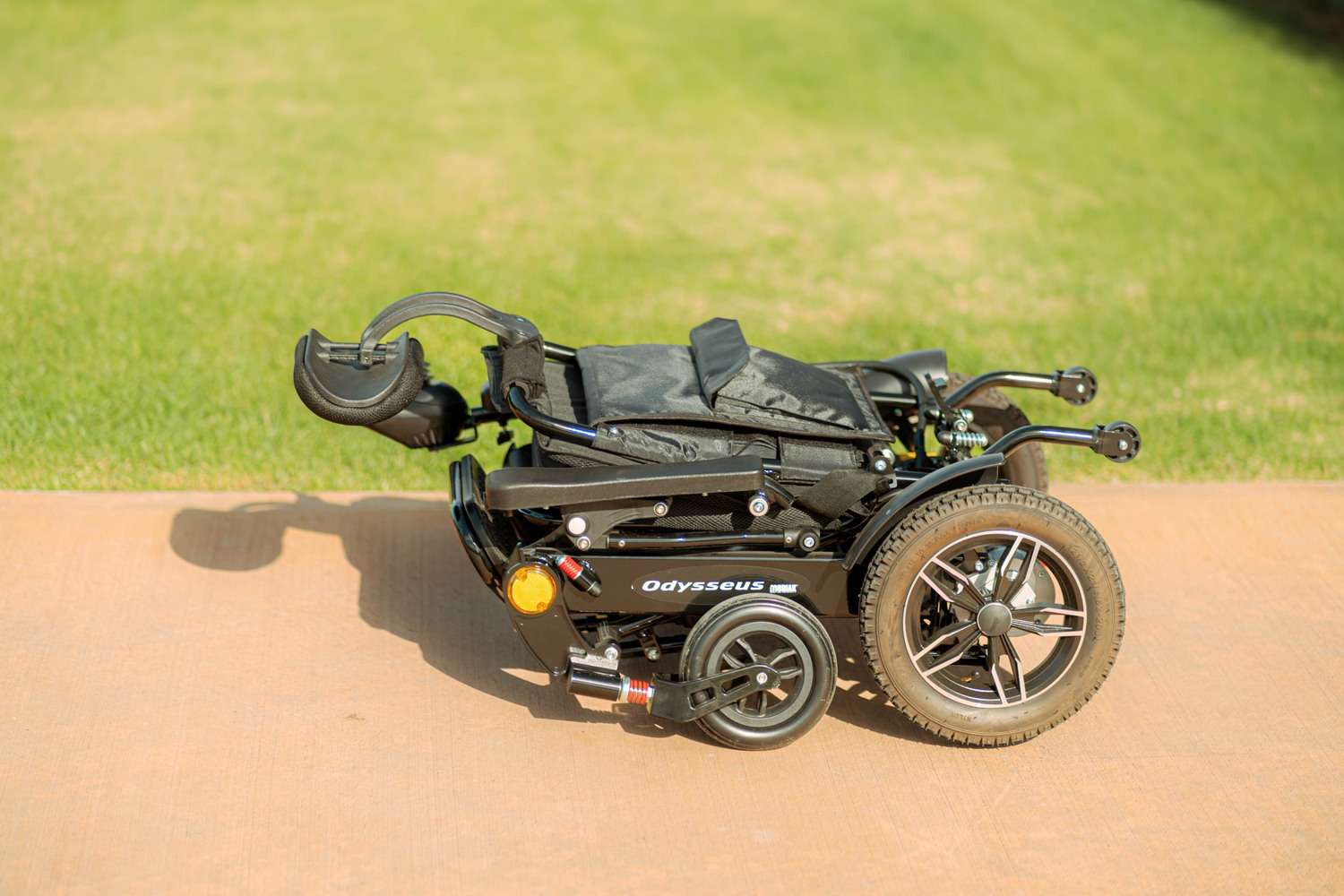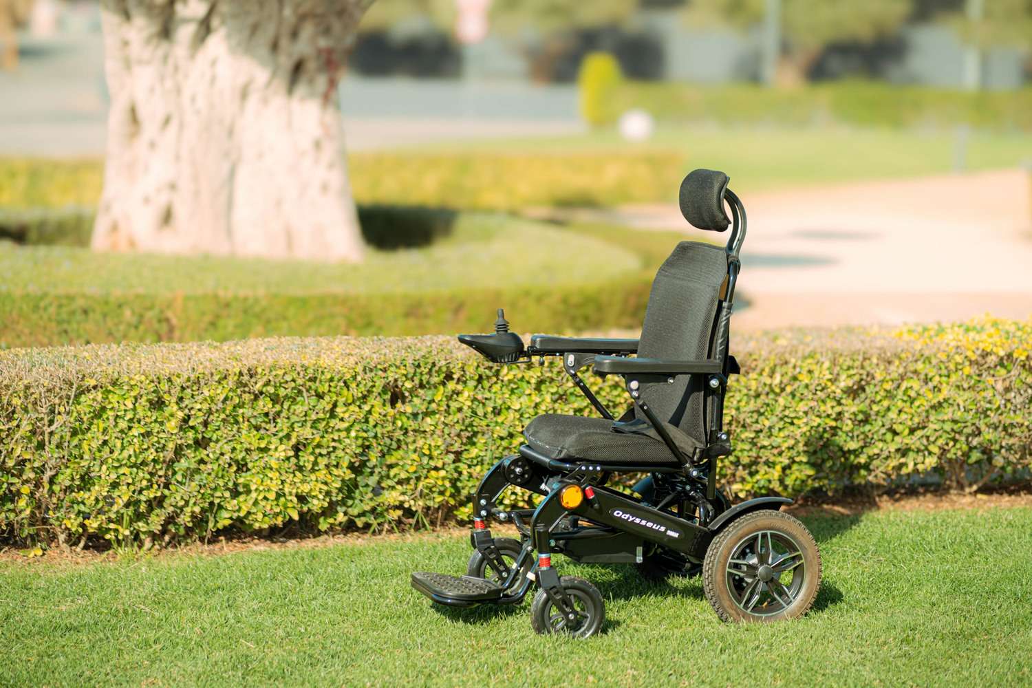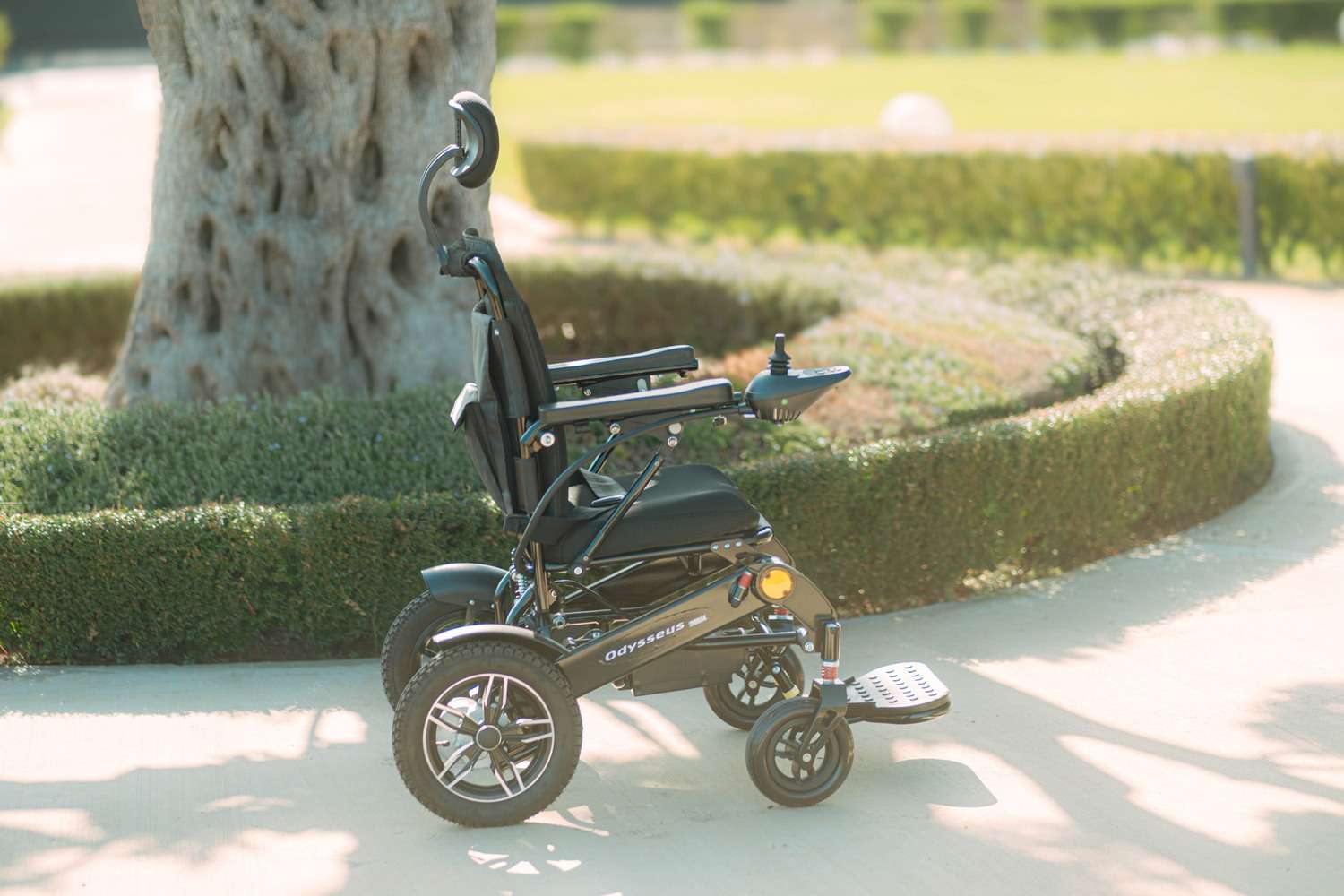 Шифра | 3107 Електромоторна инвалидска количка “ODYSSEUS” изработена од алуминиумска легура, преклоплива, идеална за носење насекаде и лесна за складирање. Создадена за оние кои сакаат независен и активен животен стил, а воедно ја одржува нејзината практичност и удобност. Нејзиното седиште со потпирач за грб и глава кое се спушта овозможува пријатно искуство. Покрај тоа, нејзиниот компактен, преклоплив дизајн ја прави идеална за транспорт во автомобил и лифт. Наменета за постари лица и лица со попреченост.
