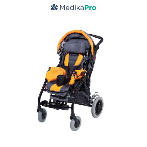 Количката е со удобно седиште, подлога за поделба на двете нозете, сигурносен појас, прилагодливо и отстранливо лежиште/седиште и со потпирачи за грб и глава.
