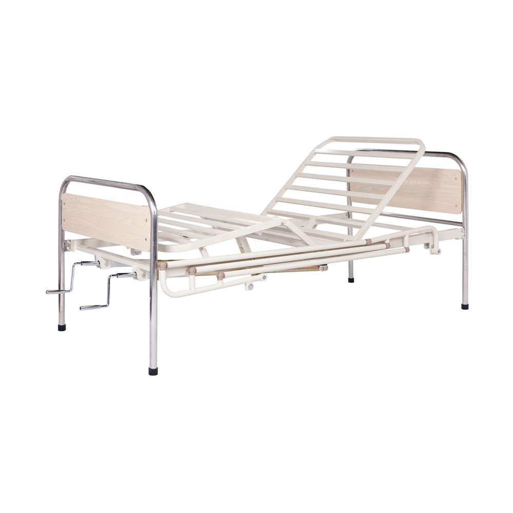 Овој болнички кревет е дизајниран да им служи на пациенти на кои им е потребно асистирано движење, овозможувајќи им лесно да преминат од лежечка во седечка положба. Рамката е изработена од електростатски челик обложен со прашкаста боја, што обезбедува долготрајна издржливост и отпорност на корозија. Креветот има четириделна челична плоча и дрвена табла за глава, што нуди стабилност и естетски изглед. Далечински управувана слушалка која овозможува лесно прилагодување, додека функцијата за прилагодување на висината обезбедува удобност на пациентот и удобност на лицата што се грижат за него.