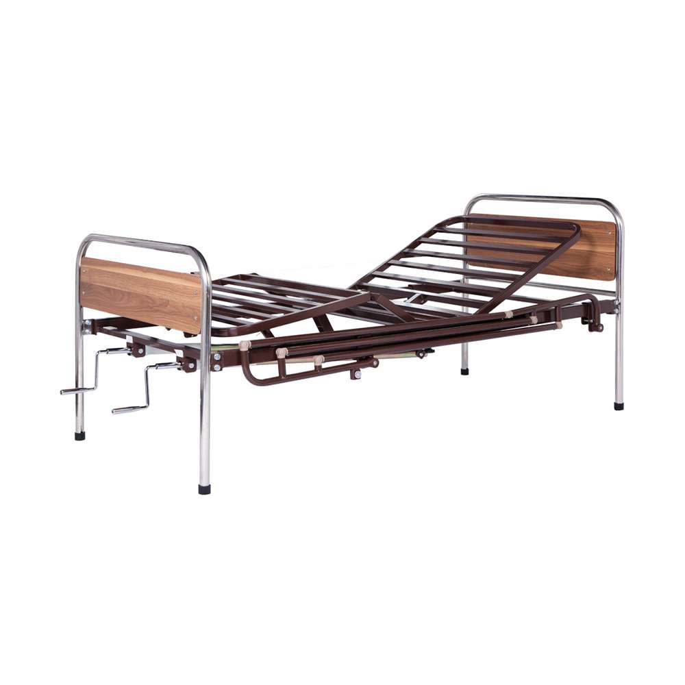 Механички медицински кревет со една опција Кафен изработен од челична рамка, дрвени плочи и носачи за душек. Прецизно дизајниран да обезбеди исклучителна удобност и функционалност. Овој ортопедски кревет има една опција за преклопување на задниот дел, која овозможува прилагодување на висината на грбот според потребите на пациентот. Обезбедува оптимална удобност, што го прави идеален избор за болници, клиники и здравствени установи.