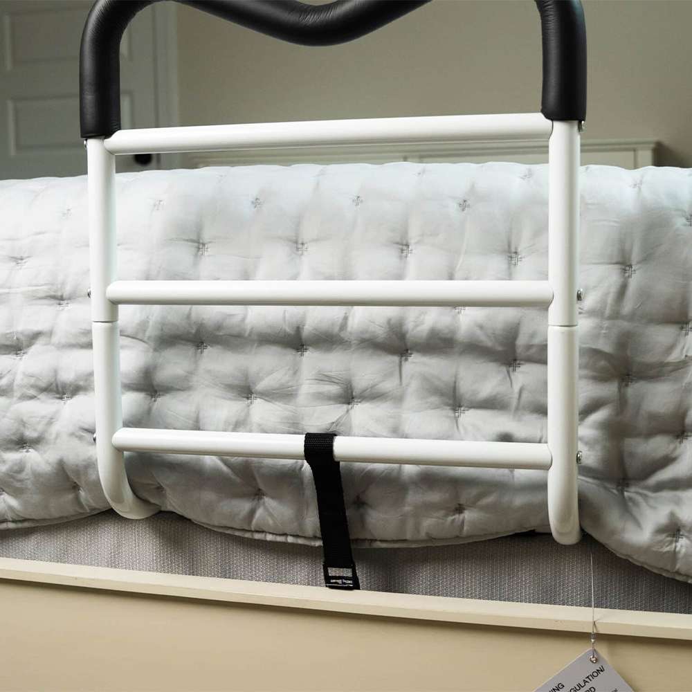 Седнете, легнете и станете безбедно од креветот со помошниот држач за кревет. Заштитната шина помага да се намали ризикот од паѓање додека седнувате и станувате од креветот, помага при менување на положбата од седење во легнување и може да помогне да дојде до паѓањето од креветот додека спиете. Универзалната конструкција и дизајн одговараат на сите типови на кревети и душеци. Помошните држачи за креветите се дизајнирани да им помогнат на поединците да останат безбедни во креветот, а исто така да им помогнат да седат, маневрираат и стануваат од кревет на безбеден начин. Без разлика дали се користи како ограда за кревет за постари лица или други поединци на кои им е предизвик да станат од кревет поради повреда или операција.