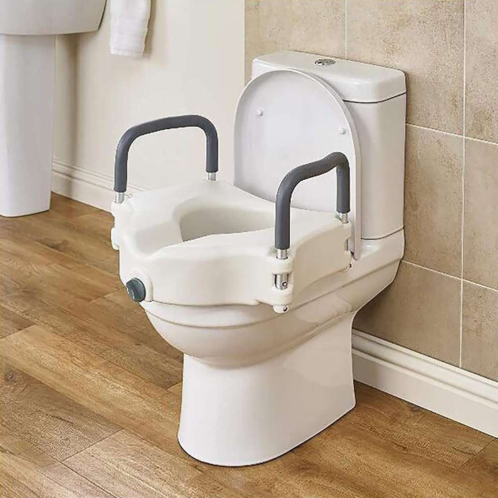 Тоалетно столче изработено од безбедна рамка од јаглероден челик, висококвалитетен и издржлив EVA материјал кој обезбедува удобност како и потпирачи за раце изработени од водоотпорен и нелизгачки ABS материјал од двете страни. Ова столче не е само помошна алатка за тоалет, туку беспрекорно се трансформира во потпорна туш столица, прилагодлива безбедносна рамка за тоалет и подигнато седиште за тоалет. Неговиот мултифункционален дизајн ги задоволува различните потреби на корисникот. Дното е опремено со одвојлива кофа која лесно може да се извлече за практична употреба и лесно чистење. Дополнително, столчето има нелизгачки гумени ногарки отпорни на лизгање, што го прави погодно и за употреба во бања. Погодно за постари лица, лица со попреченост, пациенти на рахабилитација. Наменето за болници, старечки домови, како и за домашна употреба.
