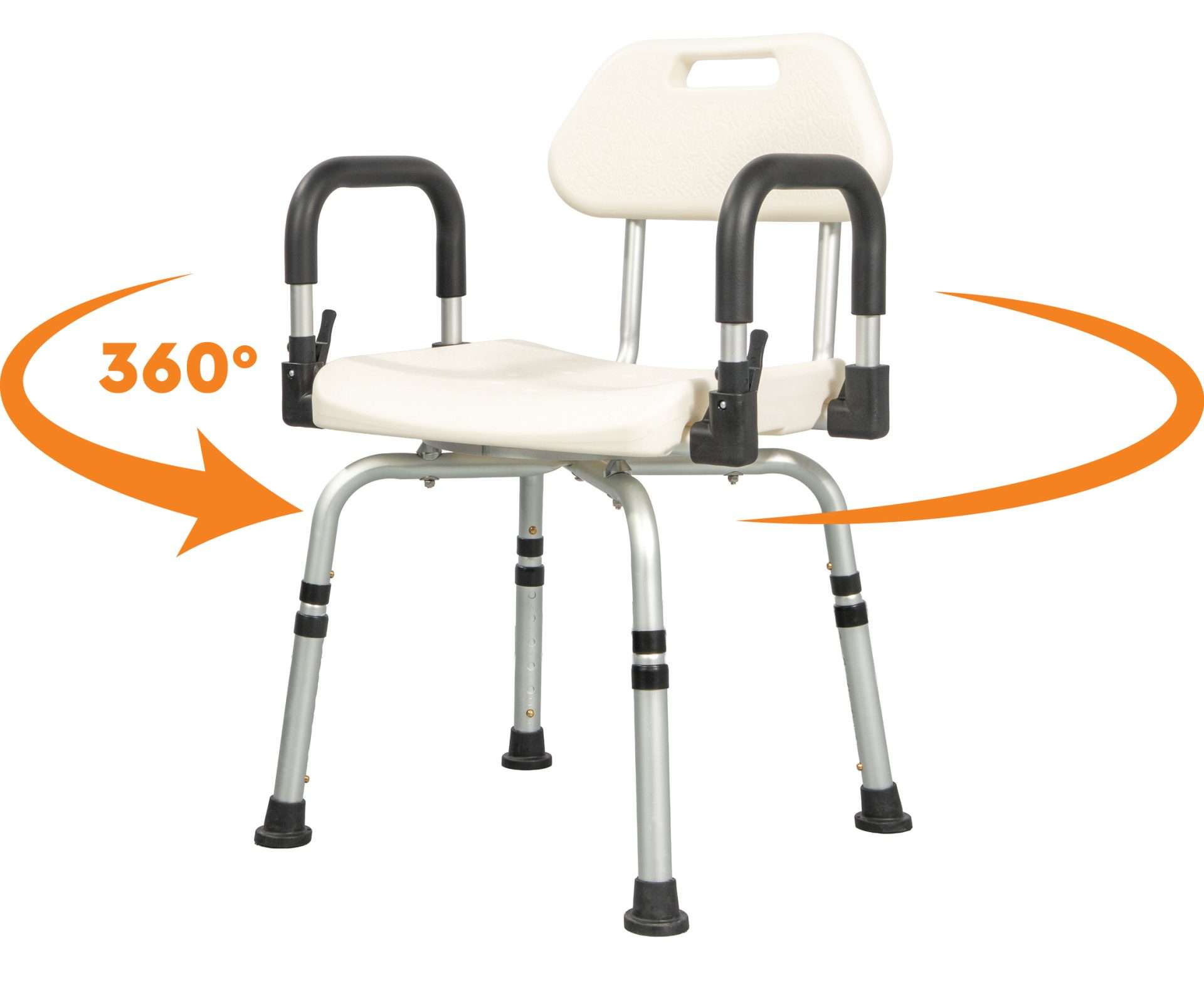 Ротирачко столче за туширање од 360° изработено од висококвалитетна алуминиумска легура, лесно преносливо со исклучителна цврстина и издржливост. Обезбедува потпора и независност при туширање, намалувајќи го заморот и ризикот од лизгање. Има ногарки што не се лизгаат, прилагодлива висина, удобен потпирач за грб и седиште кое се ротира 360° за лесна употреба. Лесно и стабилно, идеално за постари лица, лица со попреченост, лица со ограничена подвижност или за оние лица кои се опоравуваат од операција.