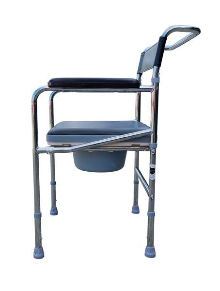 Тоалетно столче изработено од безбедна рамка од јаглероден челик во сива боја, висококвалитетен и издржлив EVA материјал кој обезбедува удобност како и потпирачи за раце изработени од водоотпорен и нелизгачки ABS материјал од двете страни. Ова столче има фиксно перниче, подвижно седиште за попријатна хигиена, пластична тоалетна школка со модерен, но дискретен дизајн која лесно може да се извлече и исчисти, а воедно е неверојатно практична и удобна. Дополнително, столчето има нелизгачки гумени ногарки отпорни на лизгање, што го прави погодно и за употреба во бања. Погодно за постари лица, лица со попреченост, пациенти на рахабилитација. Наменето за болници, старечки домови, како и за домашна употреба.