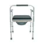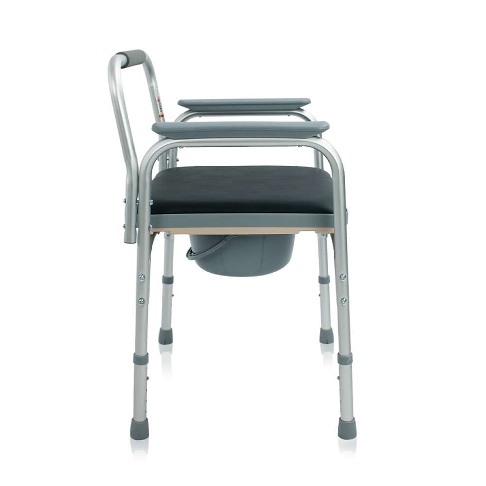 Тоалетно столче изработено од безбедна рамка од јаглероден челик, висококвалитетен и издржлив EVA материјал кој обезбедува удобност како и потпирачи за раце изработени од водоотпорен и нелизгачки ABS материјал од двете страни. Ова столче не е само помошна алатка за тоалет, туку беспрекорно се трансформира во потпорна туш столица, прилагодлива безбедносна рамка за тоалет и подигнато седиште за тоалет. Неговиот мултифункционален дизајн ги задоволува различните потреби на корисникот. Дното е опремено со одвојлива кофа која лесно може да се извлече за практична употреба и лесно чистење. Дополнително, столчето има нелизгачки гумени ногарки отпорни на лизгање, што го прави погодно и за употреба во бања. Погодно за постари лица, лица со попреченост, пациенти на рахабилитација. Наменето за болници, старечки домови, како и за домашна употреба.