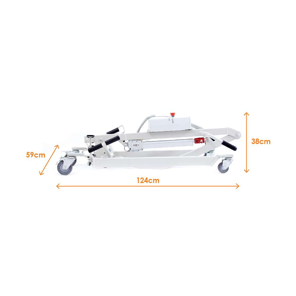 - систем за отклучување на горниот дел, кој му овозможува на корисникот да ја прикачи инвалидската количка без напор и без да мора да ги движи нозете